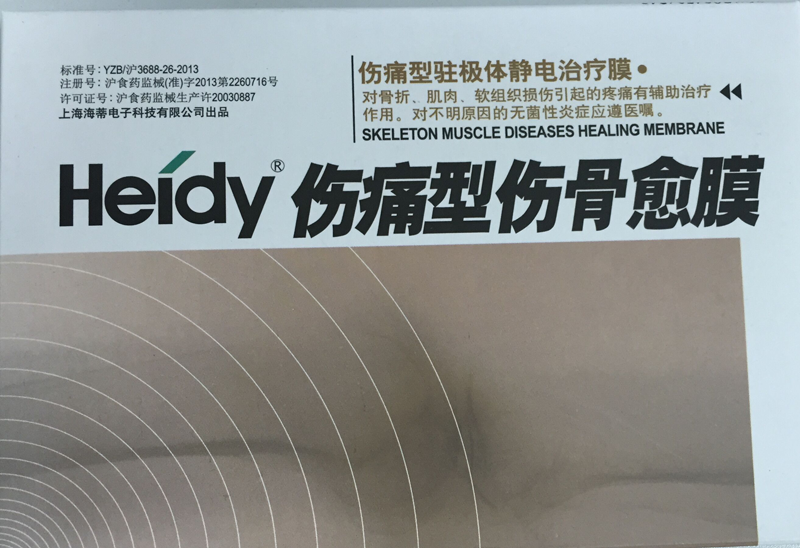 駐極體傷骨愈膜由上海交通大學研制,可有效糾正傷痛或病變部位的駐極態失衡,恢復人體組織的正常駐極態,從而消除或緩解病痛。其制造技術和工藝居國際領先地位,是對創傷醫學的一大貢獻。