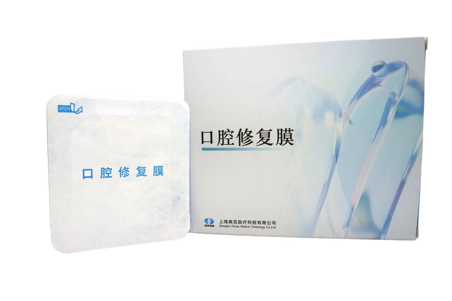 口腔修復(fù)膜產(chǎn)品以聚(D,L-乳酸)為原料,采用靜電紡絲工藝制備而成,分為三層多孔薄膜結(jié)構(gòu),產(chǎn)品表面一面平整,另一面有規(guī)則紋路。